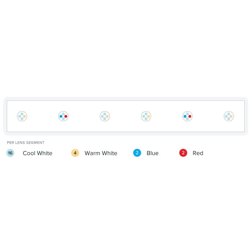 Blade Coral Grow è progettata per la massima efficienza PAR e Blade Coral Glow per la massima fluorescenza. Miscelandoli insieme, otterrete il meglio di entrambi. Le prestazioni massime si ottengono con un rapporto di 2:1 tra Grow e Glow, ma una per tipo è perfettamente accettabile quando è necessaria meno luce.