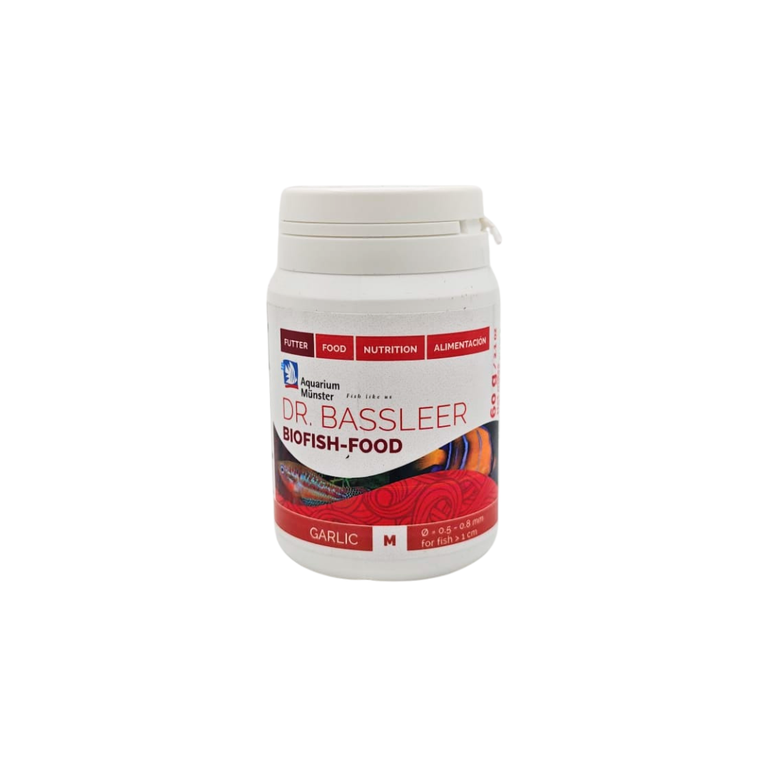 Dr.Bassler Biofish Food garlic è un mangime rivestito di una pellicola di aglio naturale. E’ un rimedio naturale, utile come preventivo contro infezioni e come modulatore del sistema immunitario. Per pesci malati, inappetenti o debilitati. Contiene, inoltre, allicina, un agente attivo naturale, ed un’elevata concentrazione di manganese, e vitamina B6. Fornisce ai pesci oligoelementi (selenio, iodio, germanio, ecc.) ed enzimi.