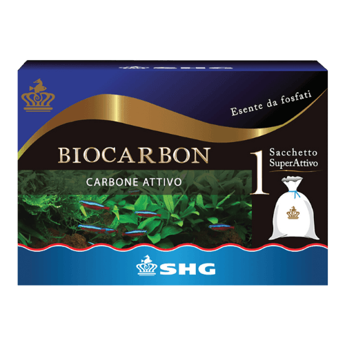 L’effetto adsorbente di Biocarbon permette di inglobare i componenti inquinanti non rilasciando in acquario gli elementi assorbiti.