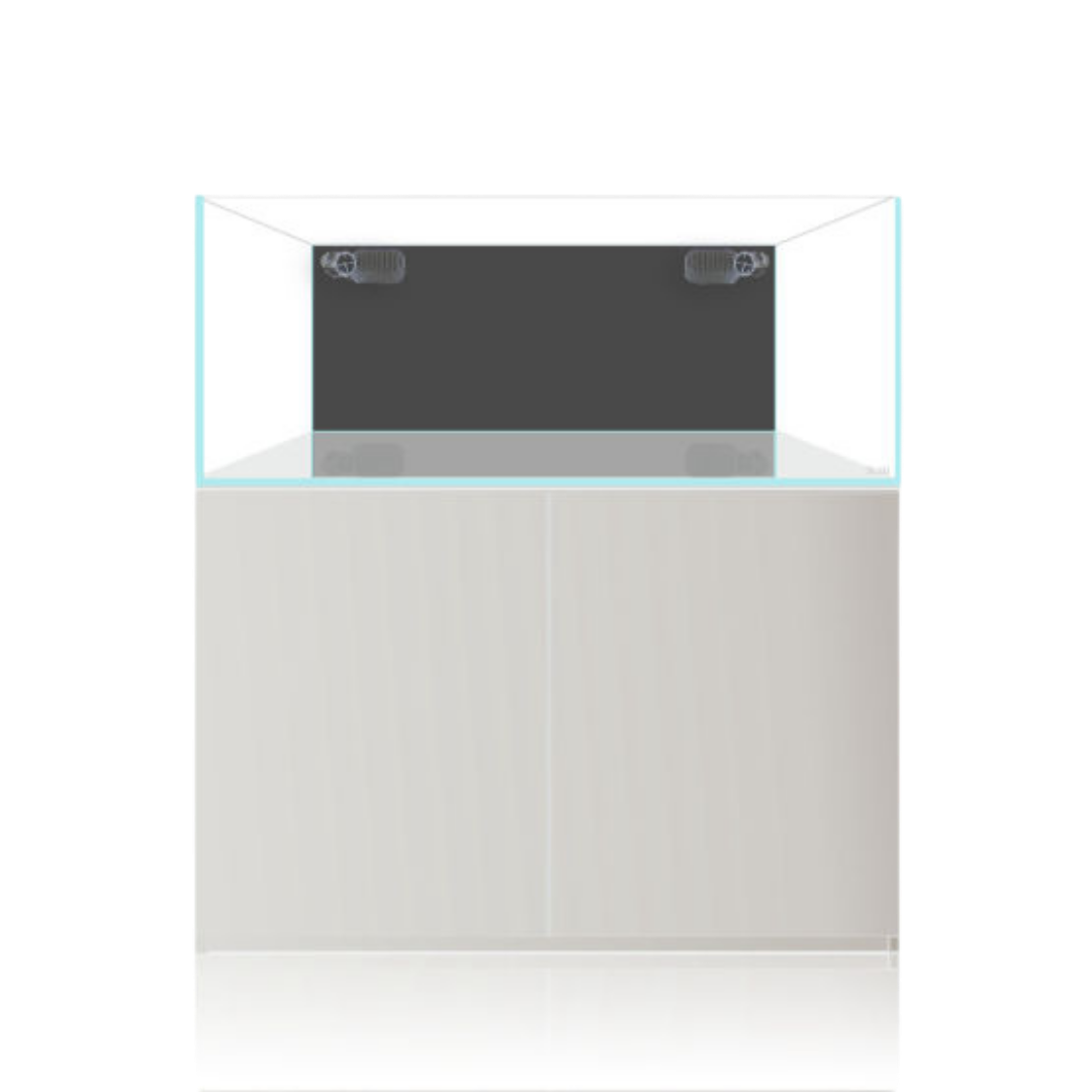 - Vasca: Acquario senza cornice con tre lati in vetro ultra chiaro (trasmittanza del 92%), silicone trasparente e retro rivestito in vinile nero.