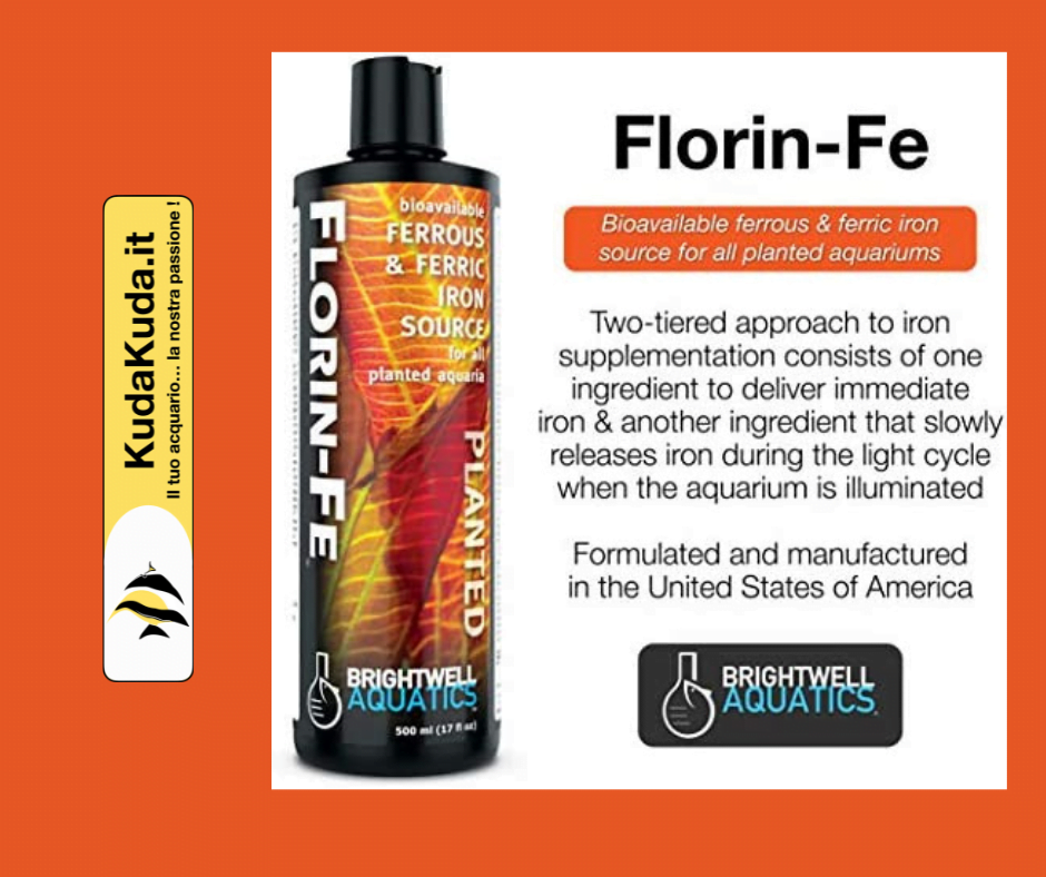 Avanzato: Prima di integrare, determinate la concentrazione di ferro in acquario utilizzando un test accurato. Ogni ml di Florin-Fe aumenterà la concentrazione totale di ferro (“[Fe2+/3+]”) in 4 litri d’acqua di 3.2 ppm. Ogni goccia incrementerà il [Fe2+/3+] in 4 litri d’acqua di 0.4 ppm, e il [Fe2+/3+] in 80 litri di 0.02 ppm. Il range di fluttuazione del ferro dev’essere fra 0.05 – 0.10 ppm. E’ necessario assicurarsi che la concentrazione di fosfati, in un acquario in cui dev’essere somministrato ferro, non superi i 0.05 ppm. Se il [Fe2+/3+] iniziale in acquario è inferiore 0.05 ppm, somministrate, ogni giorno, il prodotto nel dosaggio massimo di 1 ml ogni 40 litri d’acqua, finché la concentrazione desiderata non verrà raggiunta. A questo punto dosate settimanalmente o al bisogno. Per determinare il dosaggio giornaliero di mantenimento di [Fe2+/3+] misurate il consumo giornaliero di [Fe2+/3+], ogni giorno alla stessa ora, per una o due settimane. Calcolate il volume d’acqua dell’intero sistema. Dividete il consumo di [Fe2+/3+] per 3.2; moltiplicate questo valore per il volume d’acqua del sistema ed otterrete il dosaggio necessario a mantenere stabile il [Fe2+/3+].