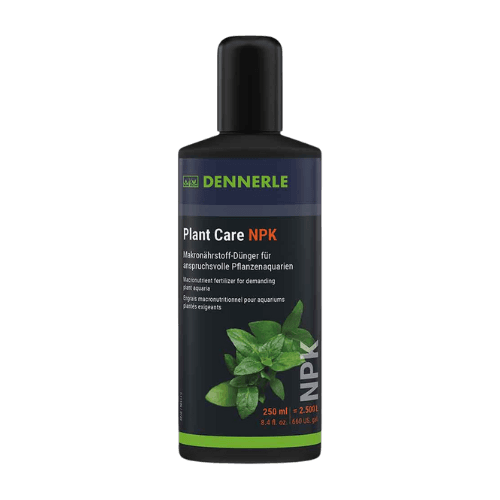 Ogni acquario ha un consumo specifico di nutrienti che dipende dalla quantità di piante, specie vegetali, animali, alimentazione, cambi d’acqua e condizioni di crescita (quantità di luce/tempo di illuminazione, aggiunta di CO 2 , tecnologia di filtraggio, ecc.). L’aggiunta necessaria di NPK dovrebbe quindi essere determinata individualmente per ogni acquario.   Plant Care NPK viene utilizzato solo quando necessario, cioè quando c’è una reale carenza di macronutrienti. Si consiglia di misurare settimanalmente il contenuto di nitrati e/o fosfati e di dosare Plant Care NPK di conseguenza. È inoltre possibile misurare il contenuto di potassio dell’acqua dell’acquario (test nei negozi specializzati). Tuttavia, questa misurazione di solito non è necessaria perché l’acqua del rubinetto più la cura delle piante Viene fornito Pro e Plant Care NPK sufficiente potassio. Un sovradosaggio di potassio è difficilmente possibile nella pratica e di solito non è svantaggioso. Overdose significative di nitrati e fosfati, invece, possono favorire la crescita delle alghe. Plant Care NPK non dovrebbe quindi essere utilizzato all’inizio senza prima misurare il contenuto di nitrati e idealmente anche il contenuto di fosfato. Se l’acqua del rubinetto utilizzata per il cambio dell’acqua non contiene una quantità eccezionalmente elevata di nitrati o fosfati, successivamente in pratica la sola misurazione del contenuto di nitrati sarà sufficiente come base per decidere la concimazione NPK e il dosaggio. A tale scopo possono essere utilizzati anche semplici test di immersione, ad esempio il Dennerle WaterTest 6in1.