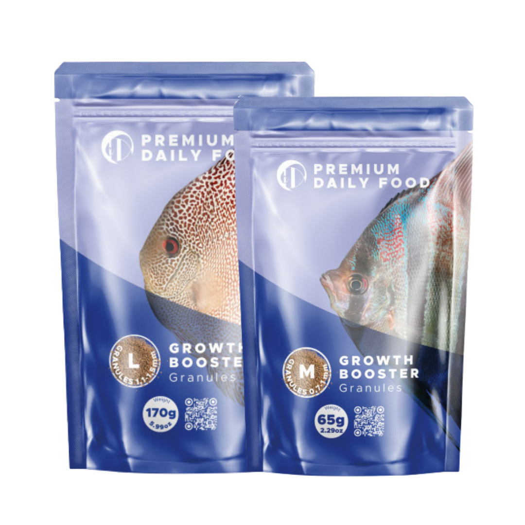 I granuli Growth Booster sono ricchi di vitamine essenziali che supportano il sistema immunitario, lo sviluppo sano delle ossa, migliorano il metabolismo e favoriscono la rigenerazione dei tessuti. La presenza di oligoelementi e macronutrienti, come ferro, zinco e calcio, rafforza ulteriormente il pesce e previene le carenze.