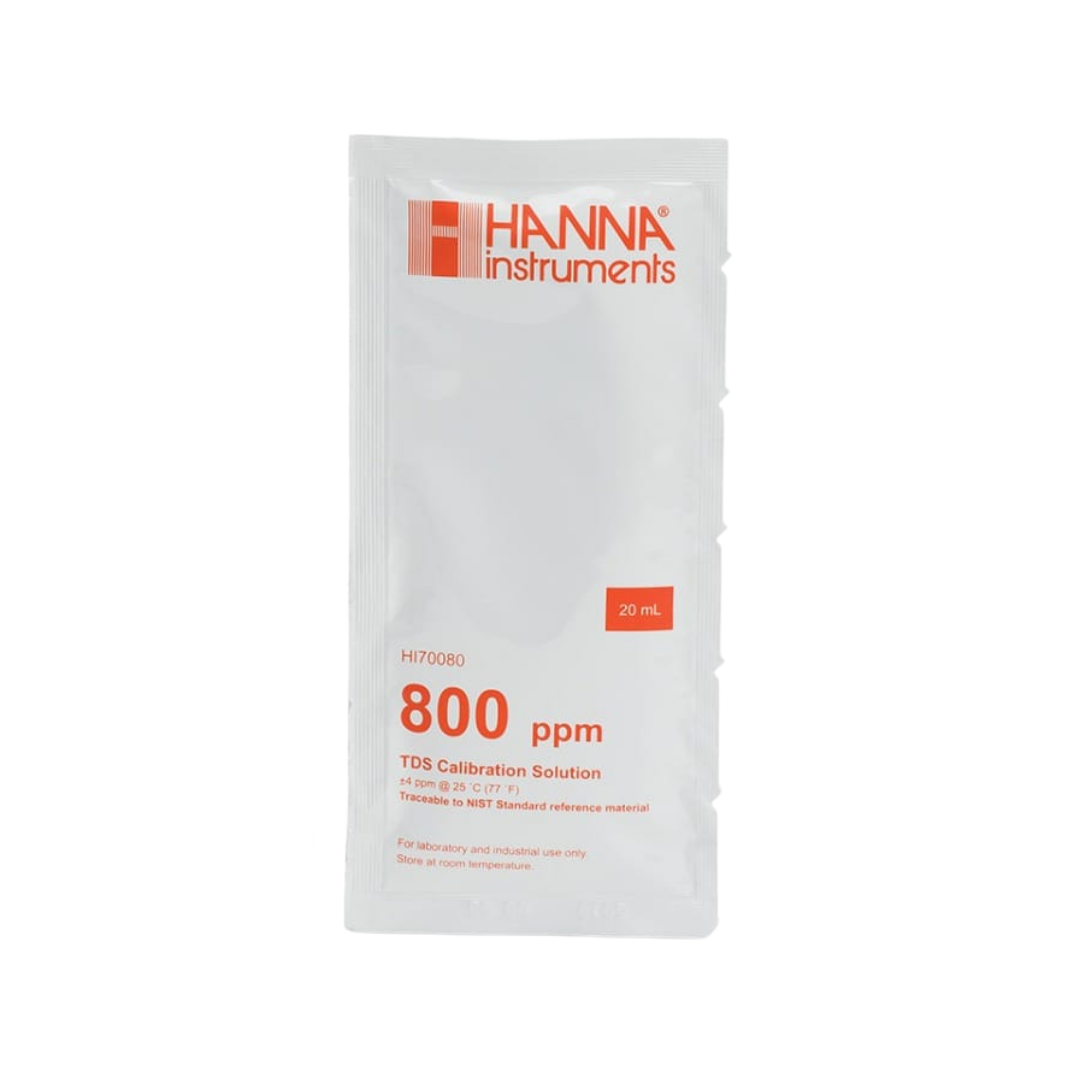 HI70080P è una soluzione standard TDS 800 mg/L (ppm) riferibile agli standars NIST, contenuta in bustine monouso. Le bustine sono realizzate con un materiale che mantiene fresca la soluzione. Le soluzioni standard Hanna sono state formulate per durare fino a 5 anni dalla data di produzione, se la bustina non viene aperta.