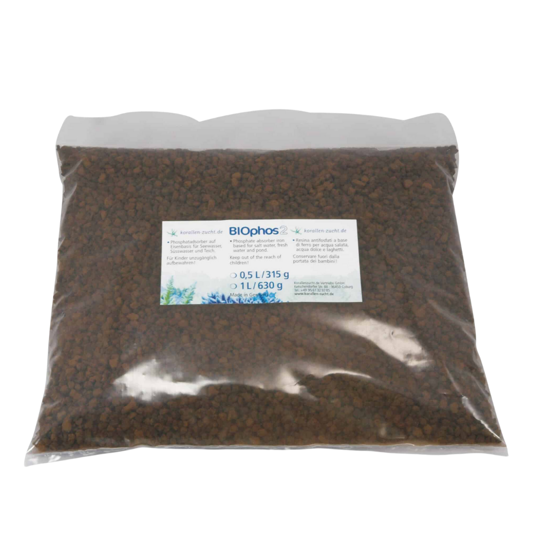 Uso: mettete Biophos 2 in un filtro con un lento passaggio d’acqua. 1 kg di prodotto può assorbire circa 60 gr. di fosfato.