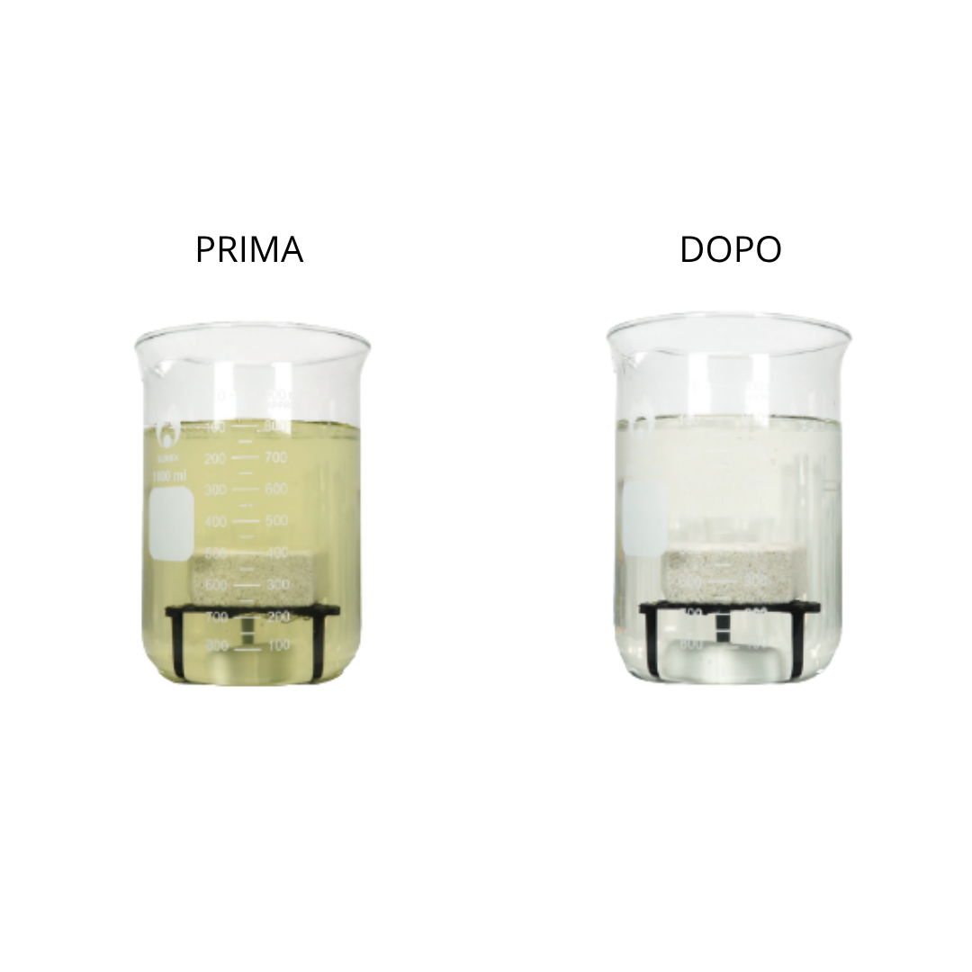 - Abbatte la materia organica disciolta (DOM), rimuovendo il colore giallo in un acquario.