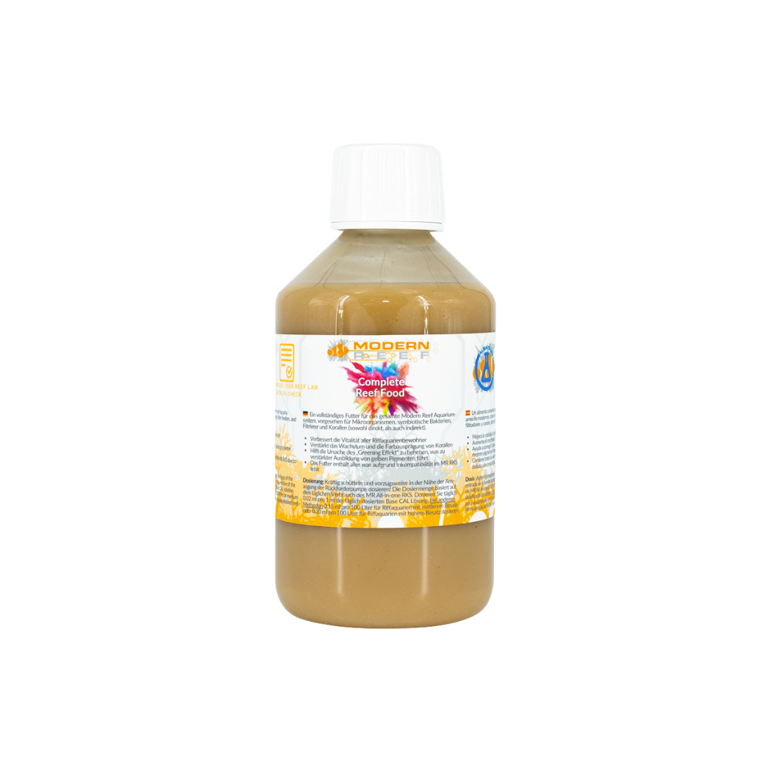 Dosaggio: questo prodotto viene dosato in base al consumo giornaliero di MR All-in-one RKS. Dosare 0,02 ml di Complete Food ogni ml di RKS somministrato 2-3 volte a settimana.