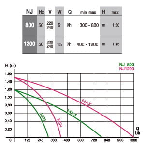 - Portata Regolabile da 400 a 1200 L/H