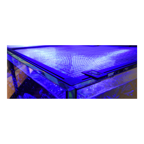 La rete, arrotolata in un tubo, può essere sagomata in base alle necessità con un taglierino, ed inserita in un frame in plastica personalizzabile. E’ infatti fornita una cornice assemblabile tramite appositi angolari. Sono disponibili poi dei segmenti, di diverse lunghezze, per alloggiare i bracci di sostegno delle plafoniere, le mangiatoie, o qualsiasi altro oggetto presente nell’acquario in cui installare la rete.