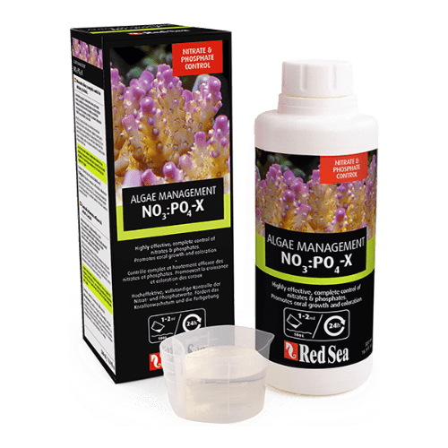 NO3: PO4-X, disponibile in bottiglie da 500ml e 1000ml, comprende anche un misurino per il dosaggio facile.