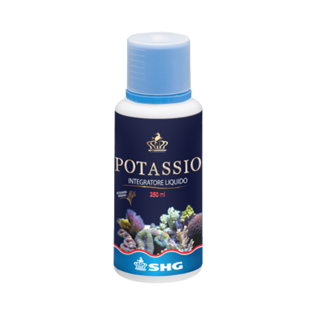 Il potassio in acquario favorisce la crescita delle zooxanthelle ed è un elemento importante per mantenere stabili la densità e la salinità dell’acqua.