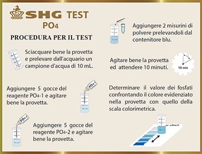I fosfati, chimicamente abbreviati in PO4, sono un prodotto di scarto dei pesci ed invertebrati. Il fosfato non è tossico per i pesci e quindi non è un problema per la loro salute. Il fosfato, come il nitrato, è un elemento indispensabile per le piante ma un eccesso può causare gravi problemi di crescita algale.