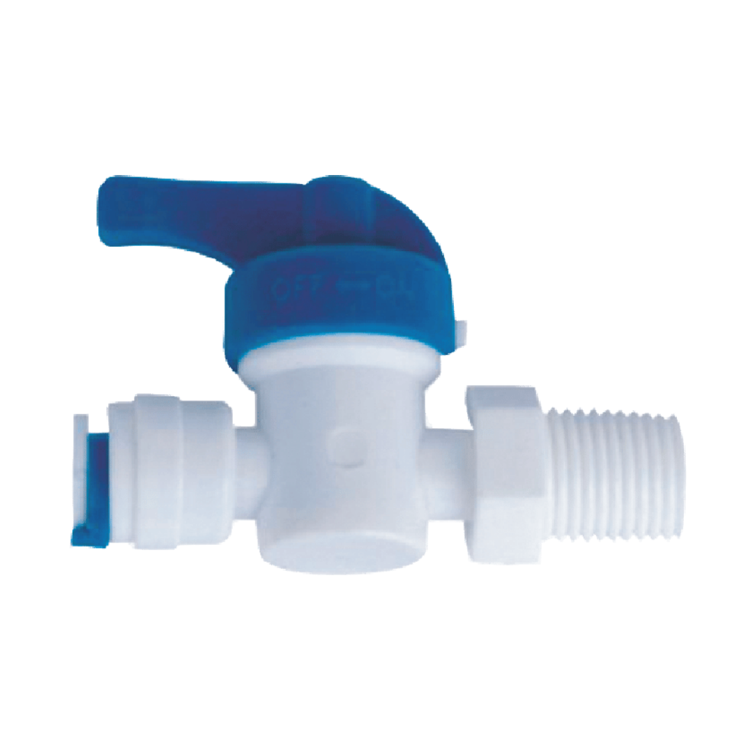 Valvola che consente di aprire o chiudere il flusso di acqua in un impianto ad osmosi con tubi da 1/4”