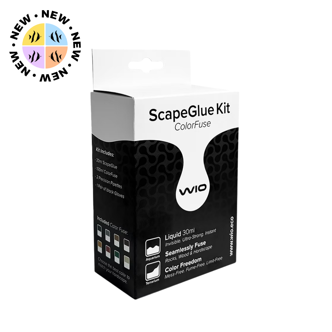 WIO ScapeGlue è la scelta professionale per la creazione di composizioni audaci e stabili per acquari, paludari e terrari. La nostra esclusiva tecnologia ColorFuse consente di fondere perfettamente rocce e legno di qualsiasi colore, creando un’unione perfetta per una finitura impeccabile e naturale. Ogni set include un tubetto da 30 ml, due pipette di precisione, un set di guanti neri e il ColorFuse da 100 ml scelto, disponibile in uno spettro completo per adattarsi a qualsiasi tipo di pietra o legno.